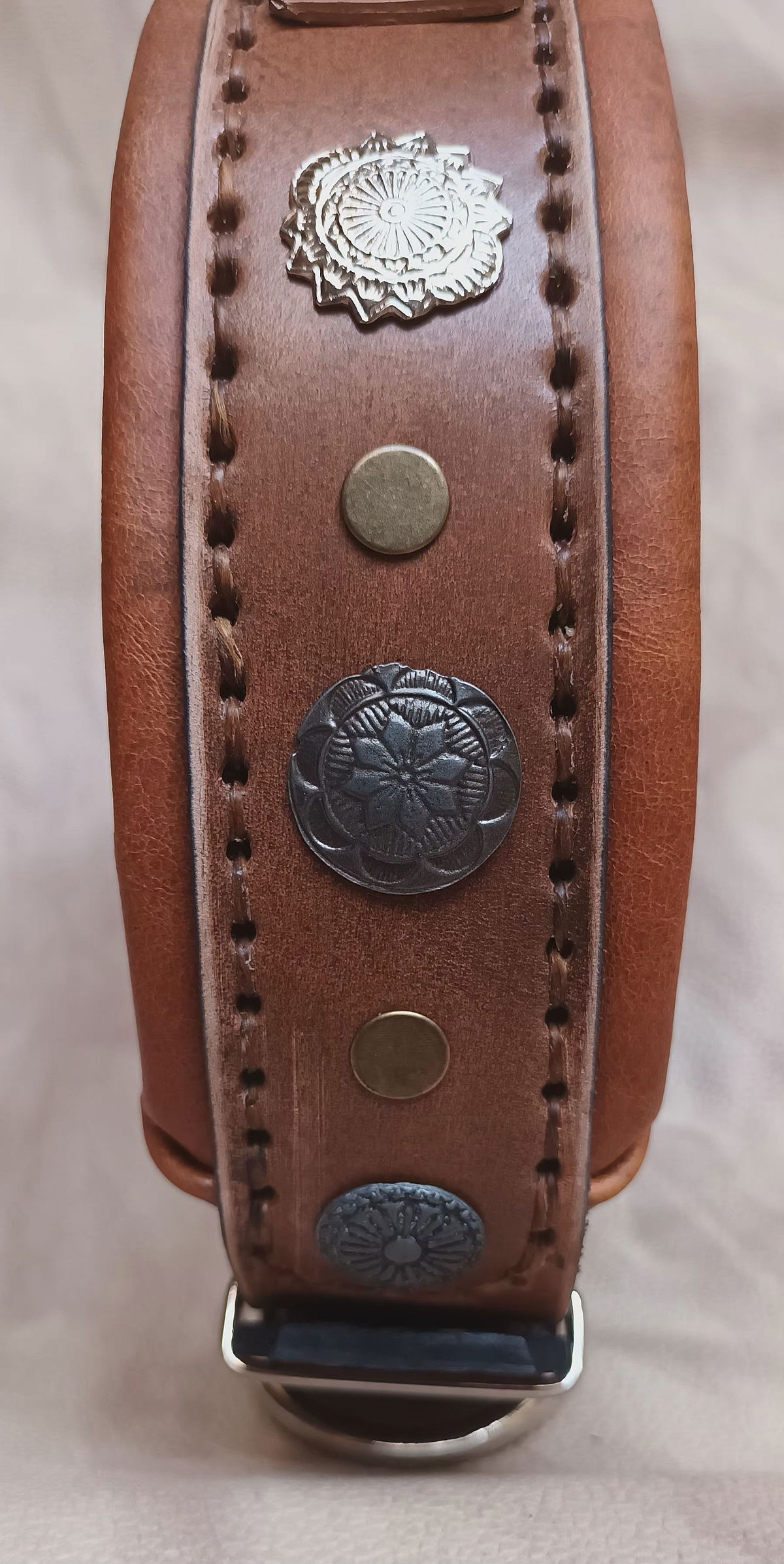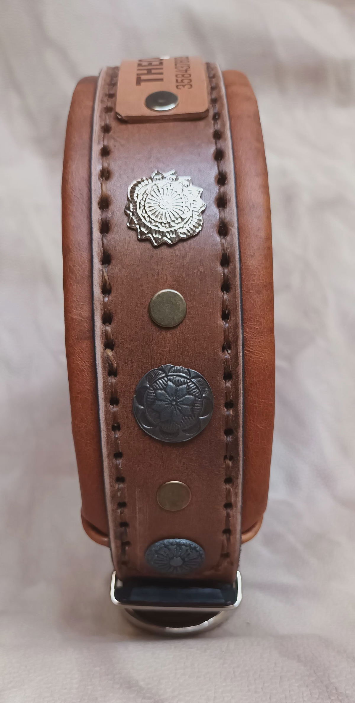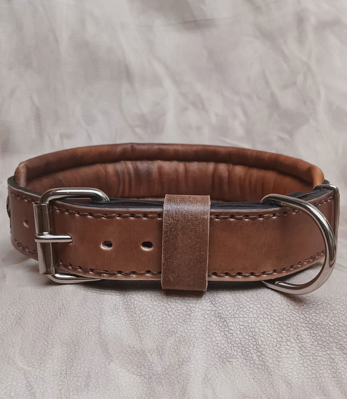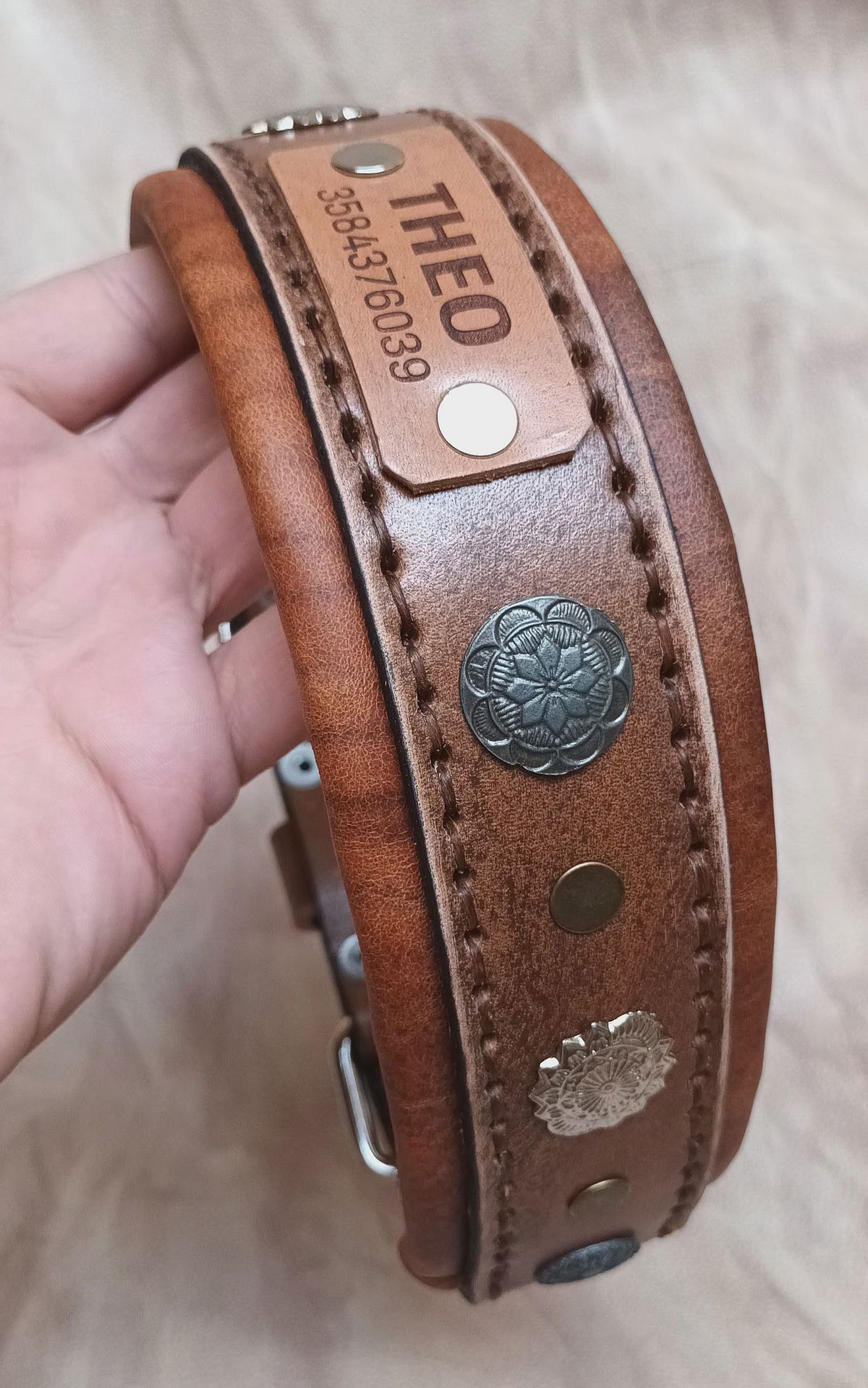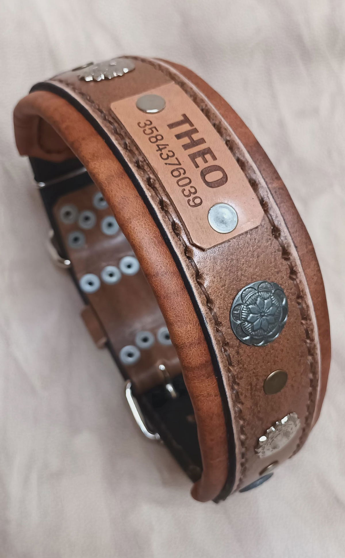 Equipado con herrajes metálicos reforzados para máxima seguridad y una placa de identificación incorporada, este collar no solo destaca por su estética imponente, sino también por su funcionalidad. Ideal para perros de carácter fuerte y guardianes por naturaleza, el Collar "Rakas" es una declaración de estilo y poder.