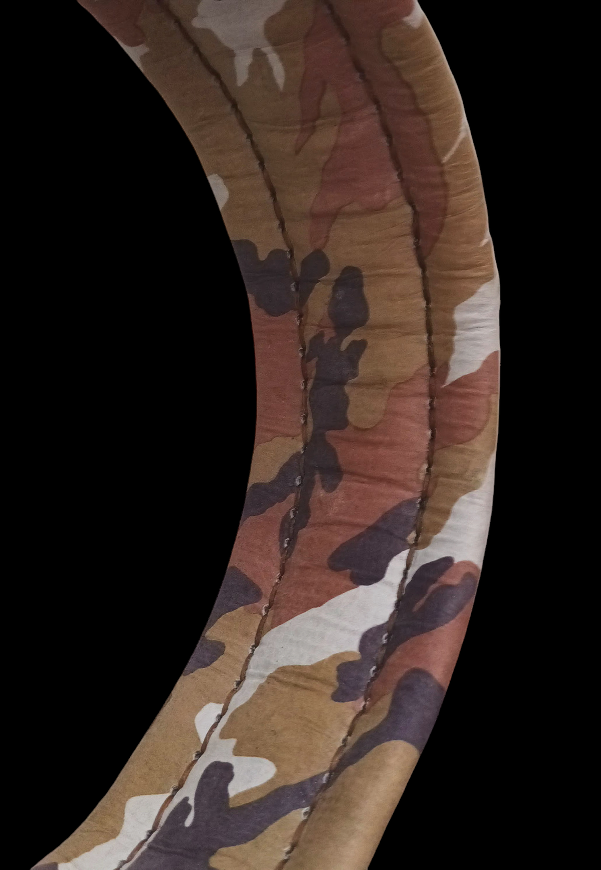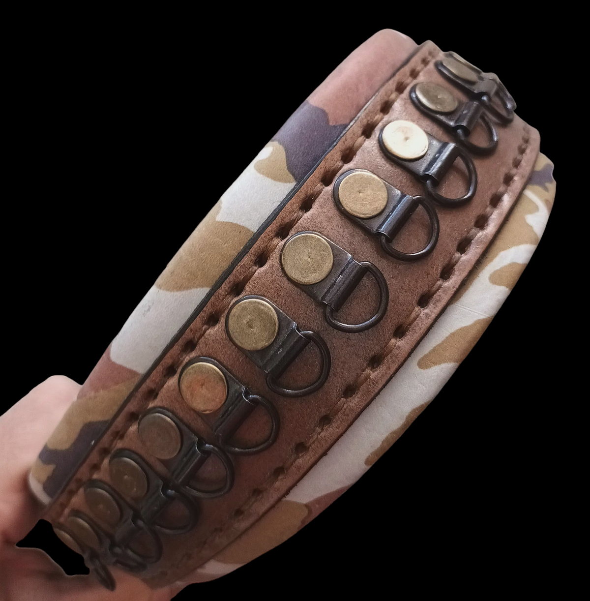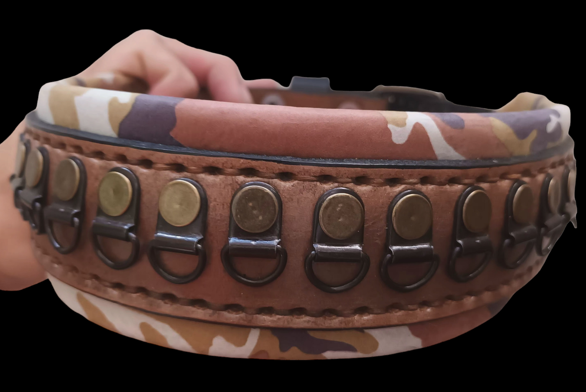 Confeccionado completamente a mano, combina cuero camuflado suave en su interior para máxima comodidad y cuero grueso reforzado en el exterior para resistir cualquier desafío. Su acolchado interno protege, mientras los apliques metálicos hablan de estilo con actitud.