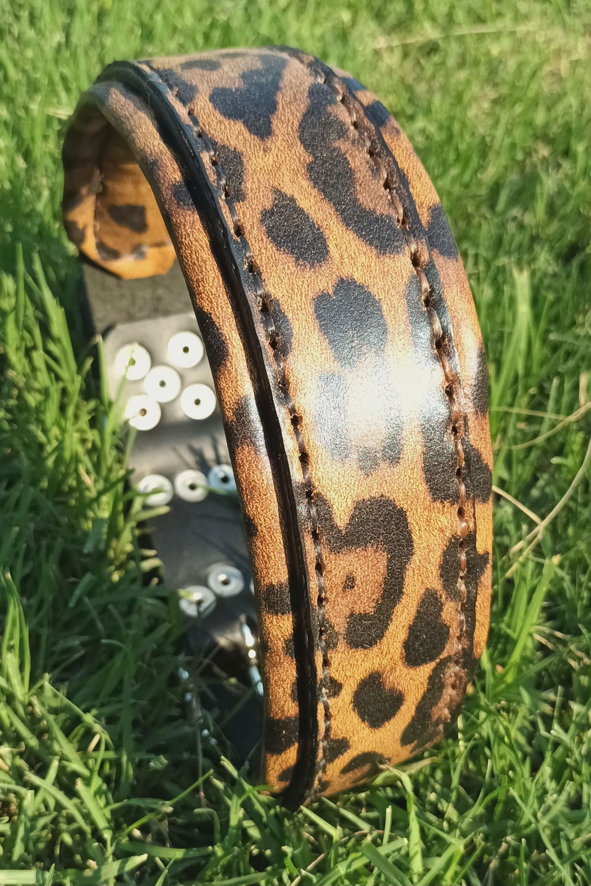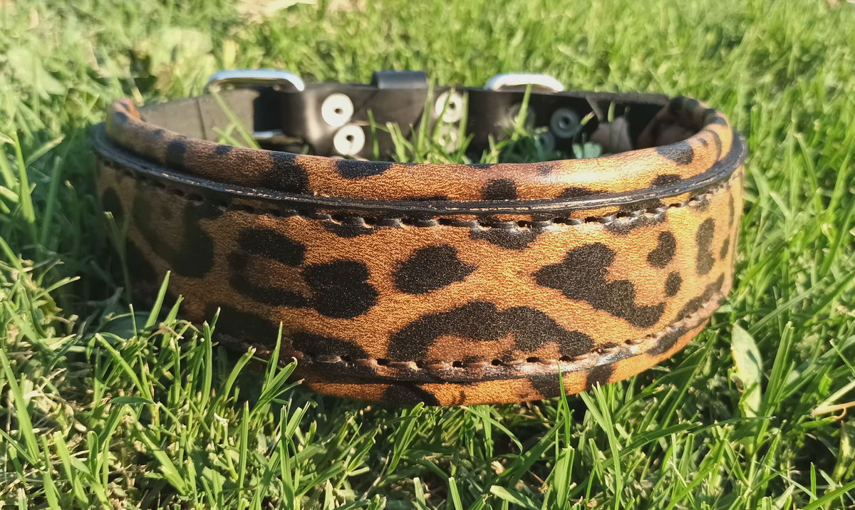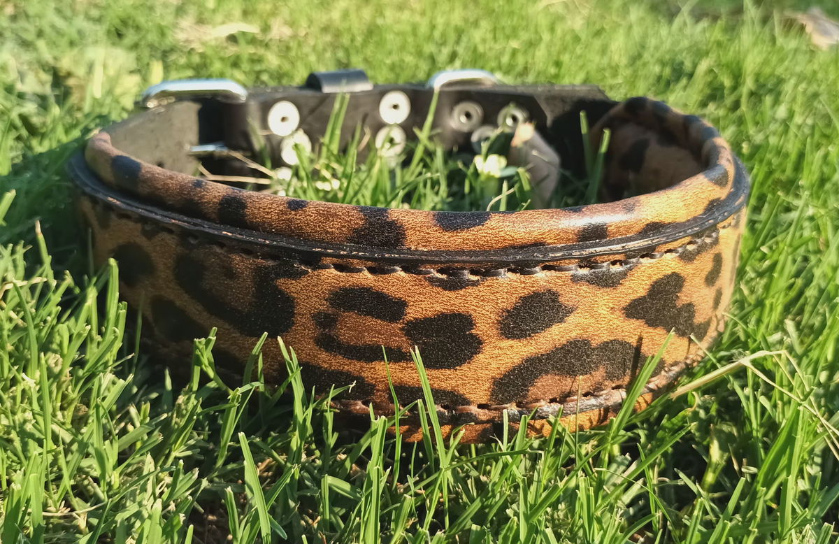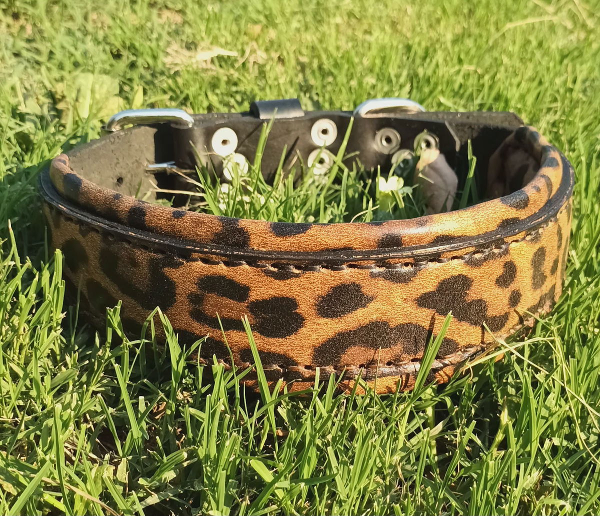 Diseñado para los perros que pisan fuerte y para humanos con actitud, este collar combina resistencia, comodidad y un look que no pasa desapercibido. La base está hecha en cuero negro curtido vegetal de primera calidad, y lleva una capa superior de cuero estampado con animal print tipo leopardo que le da ese toque salvaje y canchero.