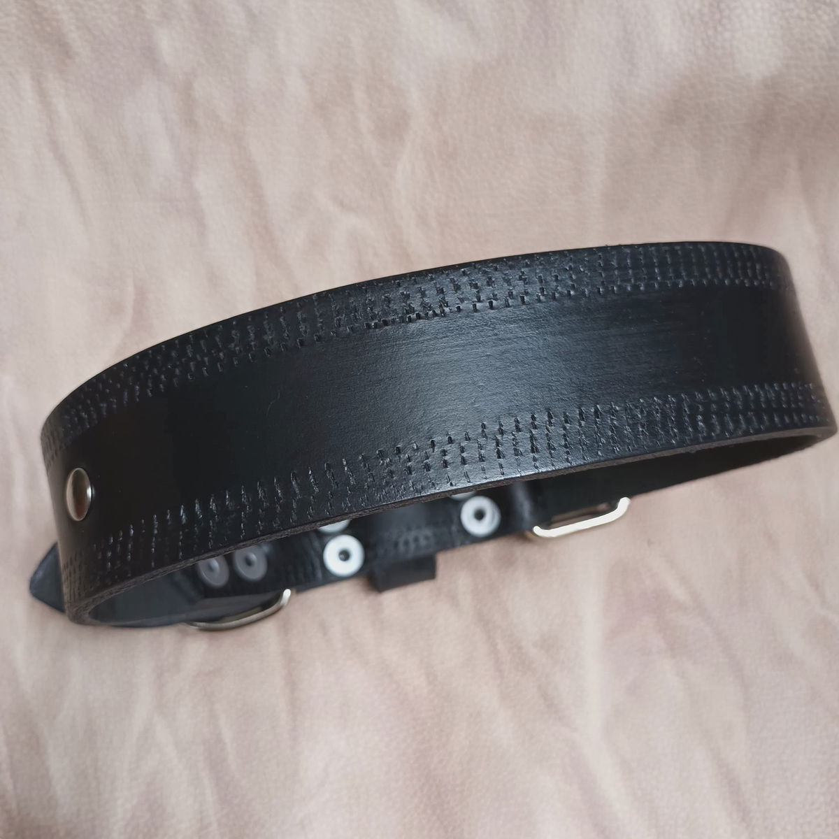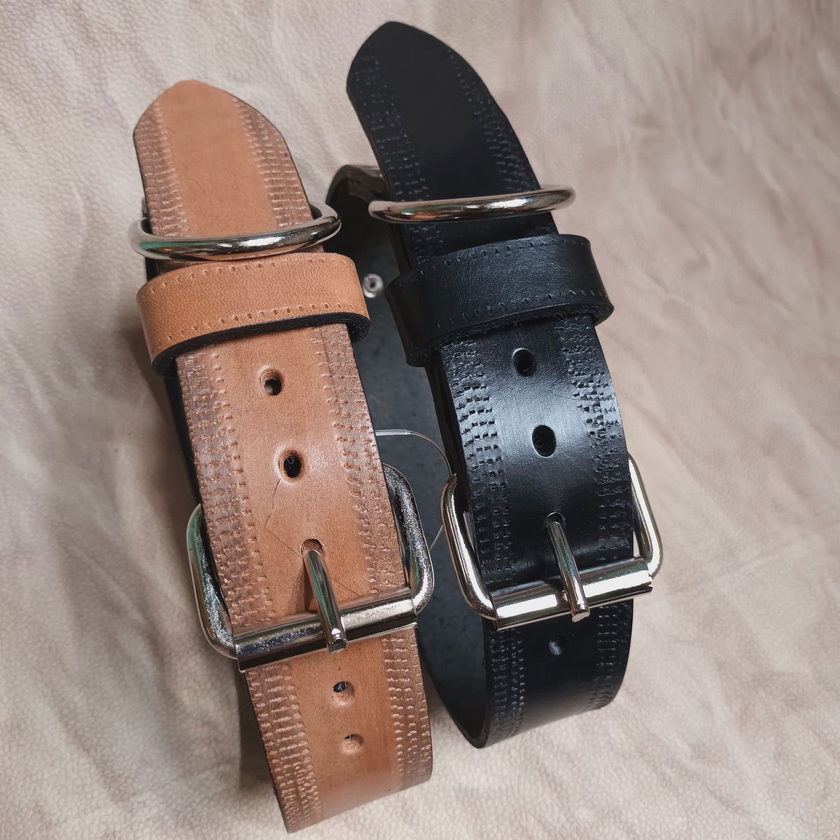 Uno de nuestros diseños más clásicos, el collar Endor en cuero vacuno curtido vegetal con trabajo artesanal de bordes grabados y encerado.