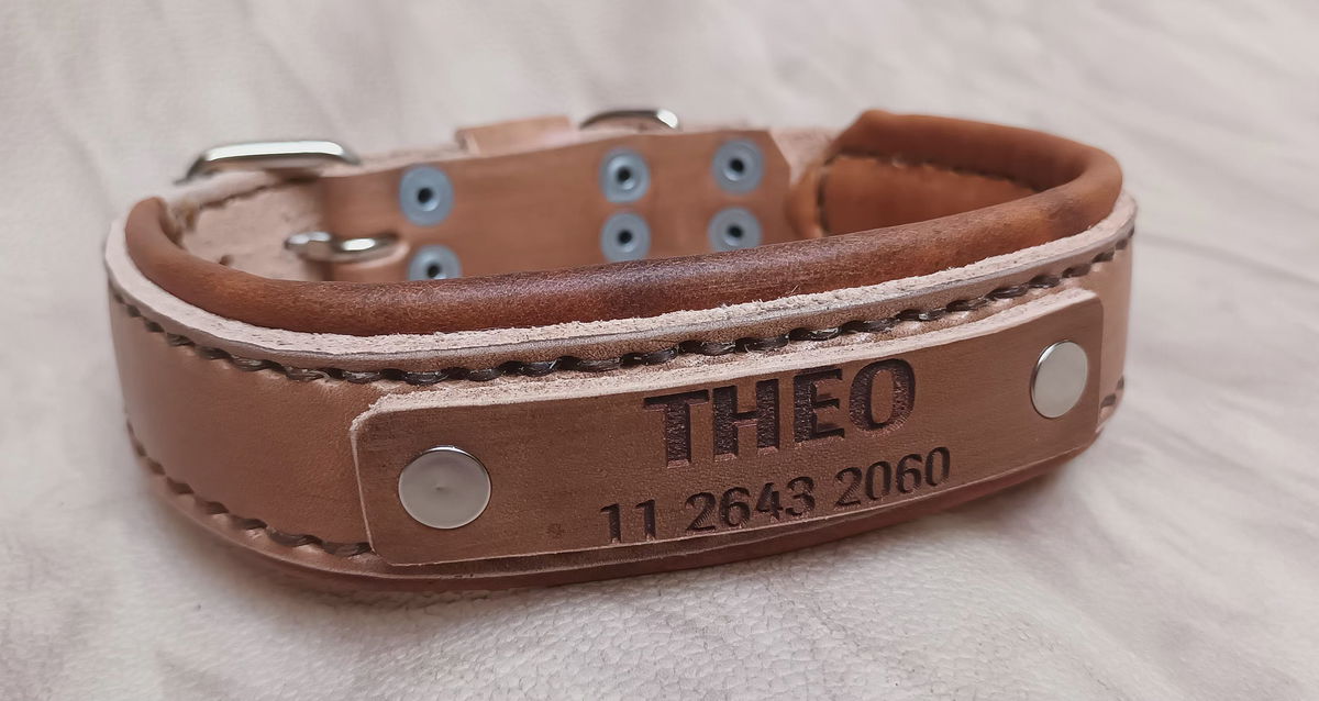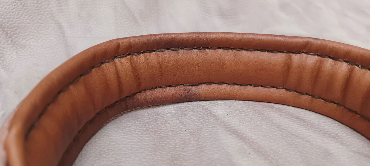 Uno de nuestros modelos más solicitados el collar Zeus en doble cuero con interior totalmente acolchado y cosido a mano en hilo encerado. Herrajes reforzados y soldados.