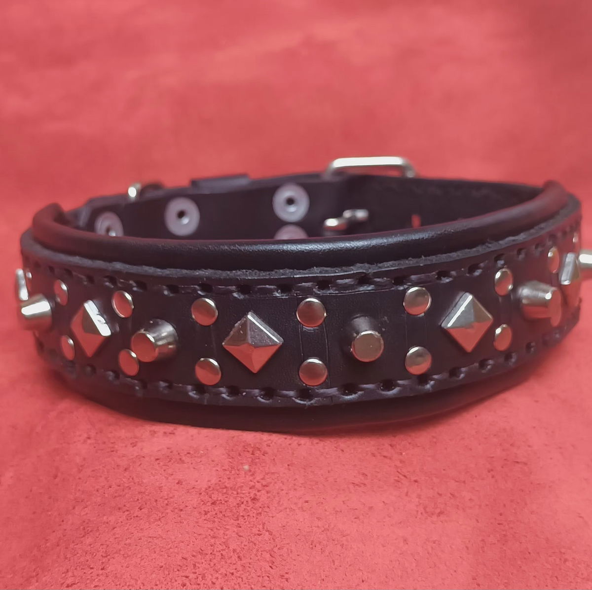 Este no es un collar cualquiera, es para perros con personalidad, con estilo, con esa vibra de estrella de rock. Está hecho a mano con doble cuero legítimo, acolchado para que sea cómodo y resistente a la vez. Las tachas niqueladas le dan ese toque punk que marca la diferencia. Ideal para perros que no pasan desapercibidos. Si tu perro tiene actitud, este collar es para él. Siempre compartiendo aventuras juntos.